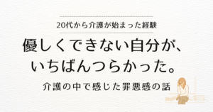 […] あわせて読みたい 介護と仕事の両立は難しい?3度の介護離職を経てたどり着いた働き方 辞めることも、続けることも簡単ではなかった私が見つけた“無理をしない選択” 仕事を続 […]