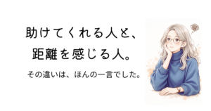 ■ お願いしたときに分かる人の本質|同じ「いい人」だった2人の違い あわせて読みたい 頼みごとで分かる人の本質|「いい人なのに疲れる人」との違いとは? 期待していたのは自分だったと気づいた日と、人との距離感の整え方 人の本質は、ふとした瞬間に見えるものだなと感じた出来事がありました。 それは、特別な場面ではな...