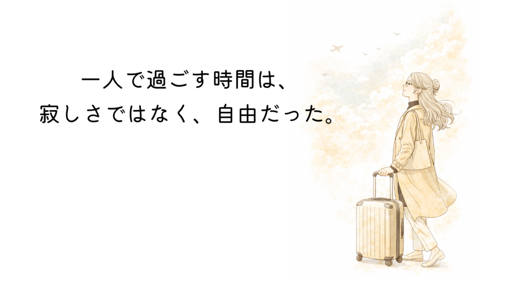 一人でどこへでも行きます。買い物も、カフェも。旅行にだって 誰にも気を使わず、自分のペースで過ごす時間。 それは、かつての「予定で埋め尽くされた日」よりも、ずっと穏やかで贅沢な時間だと感じています。