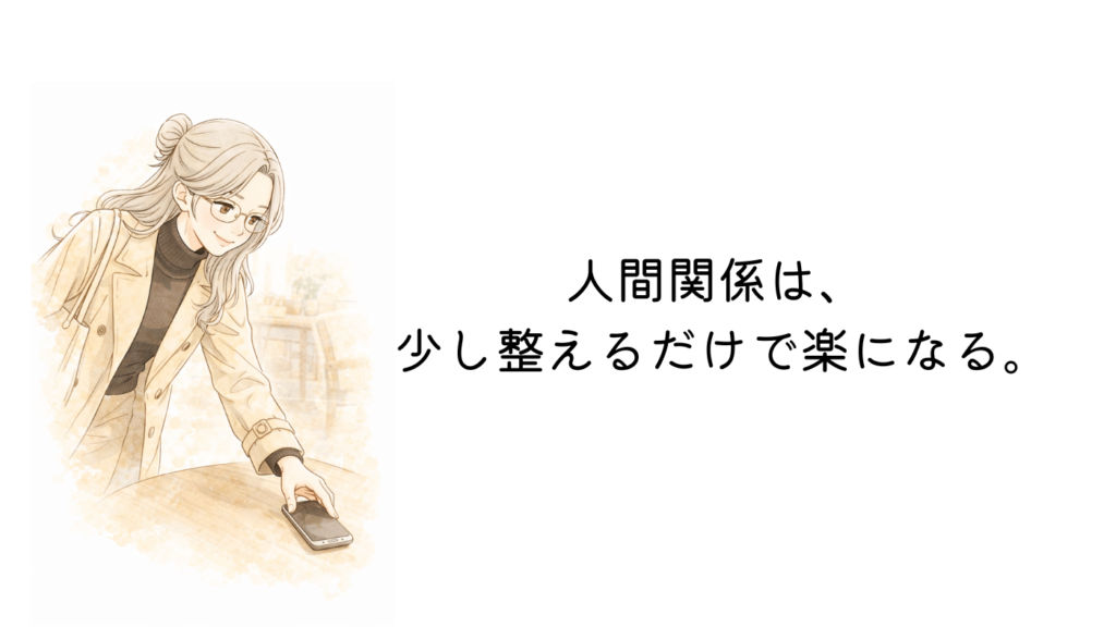 関係を切るのではなく、少し距離を置いてみる。返信を少し遅くしてみたり、誘いを一度お休みしてみたり。それだけで、心の呼吸がずっと楽になることがあります。
